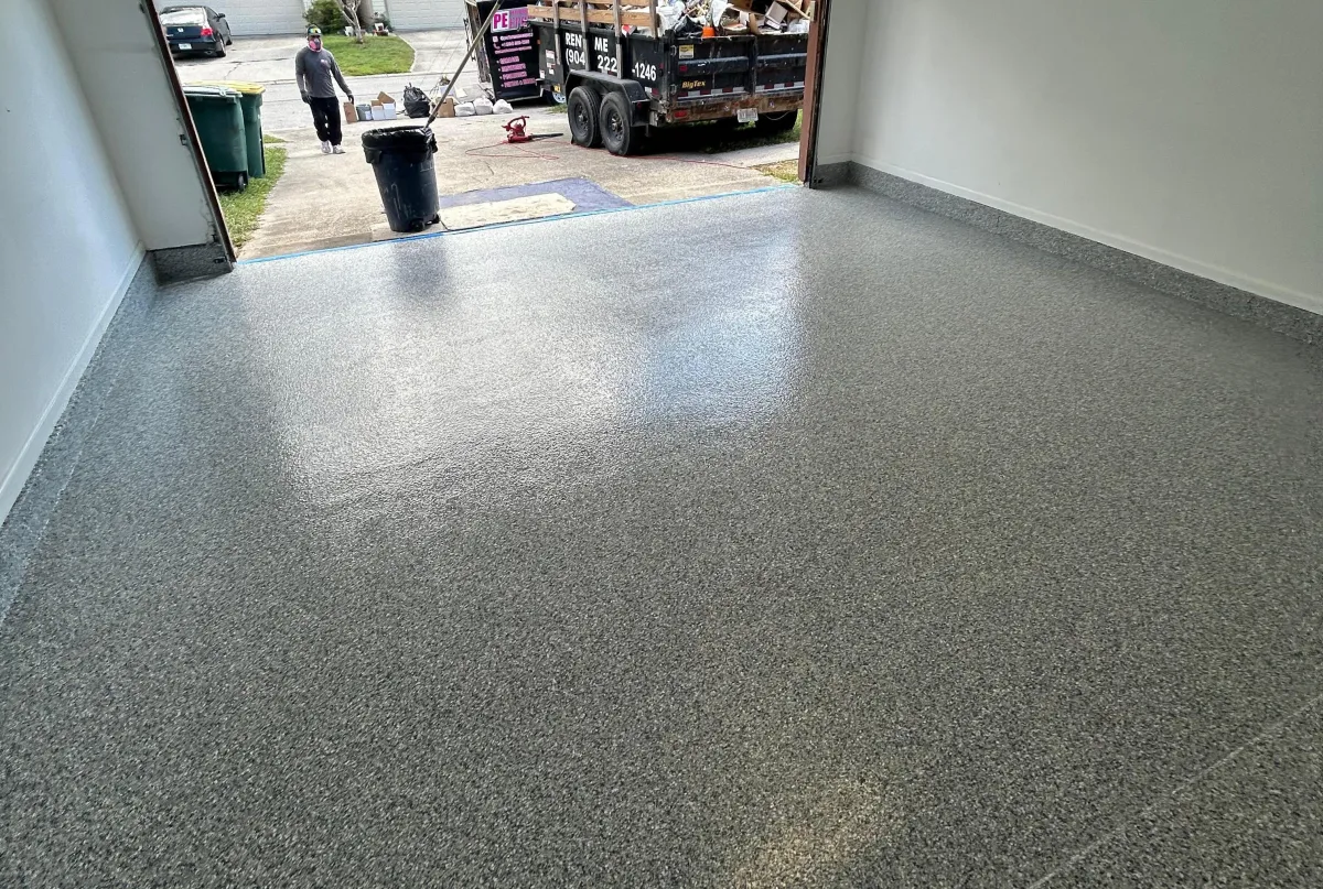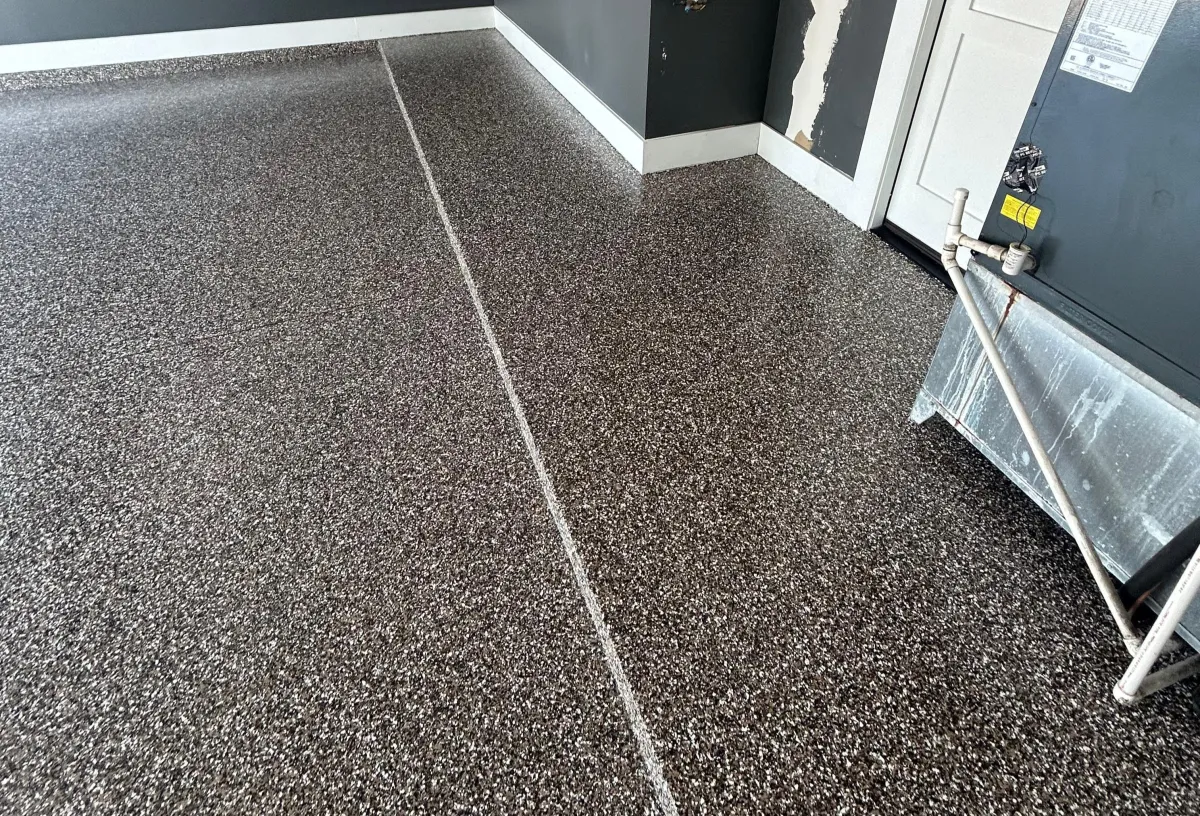 A multi-layered system comprising an epoxy base coat and vinyl flake chips, sealed with a polyaspartic or polyurethane topcoat. Water, stain, chip, and scratch-resistant — ideal for garages, patios, and busy commercial spaces.